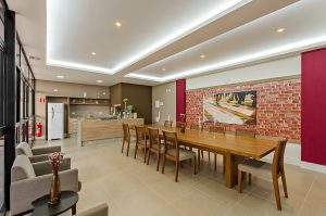 Excelente apartamento em condomínio fechado medindo 56 m², 2 quartos sendo 1 suíte, cozinha com churrasqueira integrada, sala para 2 ambientes, sacada técnica, 01 vaga , pontos de água quente nos chuveiros, torneiras e cozinha.
